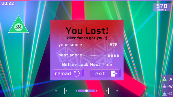 IcoBeat is a rhythm-game where the main character is a pyramid on a disco ball, whose difficult task is to survive until the end of the next track in the club. Dodge the sliding platforms, score combos and earn points