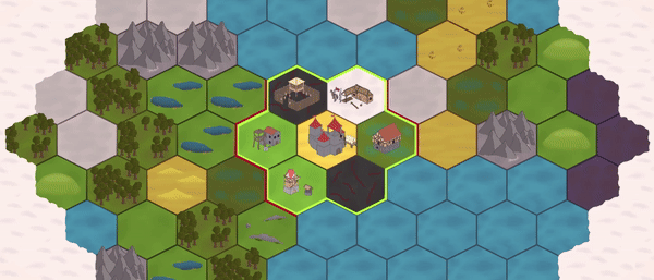 A 2D real-time strategy game played on a hexagonal grid. Gather resources, build an army, and expand your kingdom by conquering new tiles. Strategically place units to launch successful attacks and defend your realm against enemies.