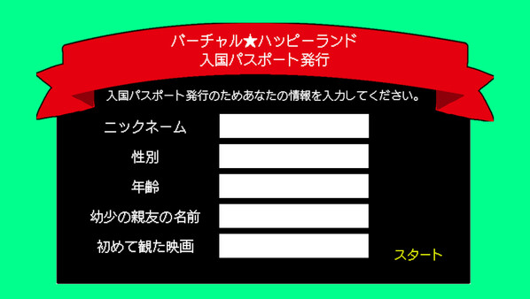 本作で記入される情報は、ゲーム内でのみ使用され、ゲームの終了際に削除されます。