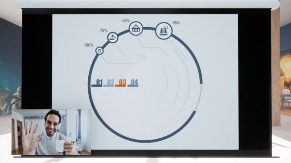 The Virtual Studio For Digital PresentationsPresentations in your own 3D room - with webcam integration, on-screen controls and the simplest integration of digital presentation tools.Compatible with Teams | Zoom | Skype | Youtube | Twitch | OBS Studio and much more