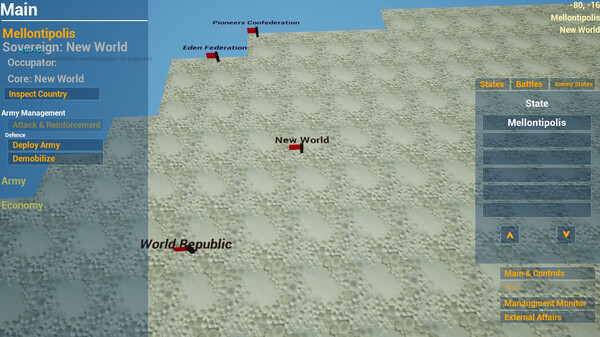 MORA is an Earth analog planet, and similar to Earth, there are two main areas: the City and the Untouched Wilderness. The City consists of lands connected to a country. In these lands, you can meet your vital needs depending on the economic state of the country. In the Untouched Wilderness, you cannot fulfill your vital needs, but you can store supplies in the cities and search for resources suitable for colonization on behalf of your country.Key Features