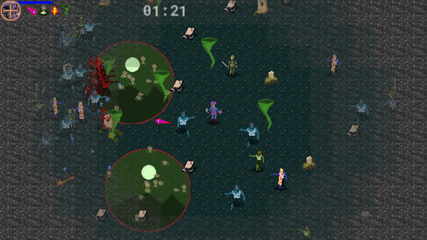 Gravepact is a survival roguelite where the goal is to destroy as many incoming enemies as possible, while collecting experience to spend on attacks, passive items and skills to build your character into a powerful conduit of destruction that lays waste to everything in your way.