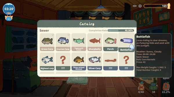 Fish Collection: Discover dozens of unique and quirky fish species, each tied to specific locations, times, weather conditions, and bait types.