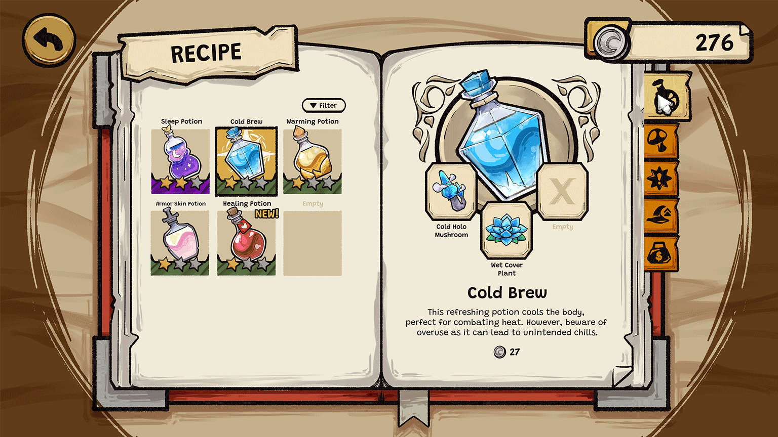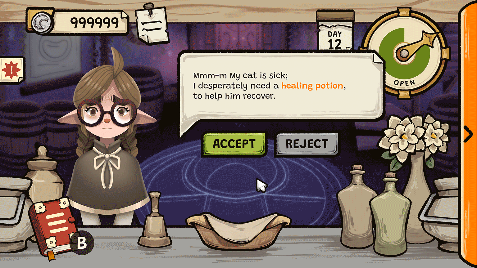 Serving a costumer's unsystematically request with potions the have been made also of combining materials to make potions used to sale or finish quests