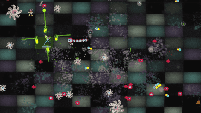 Annihilate massive hordes of the interdimensional invaders. Collect vinyl records to level up an insanely deep skill tree, unlocking game-changing perks and abilities. Break open chests for powerful items and gear up for each frantic, bite-sized run.