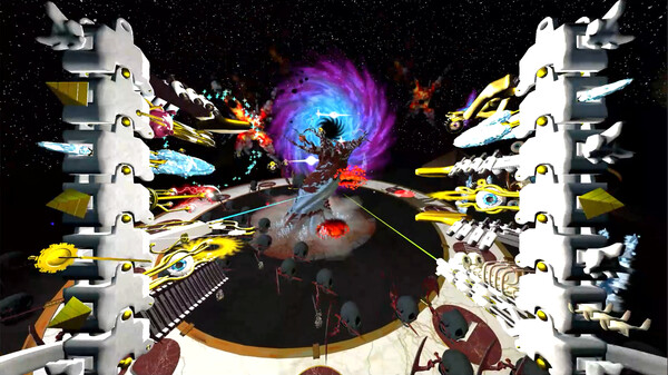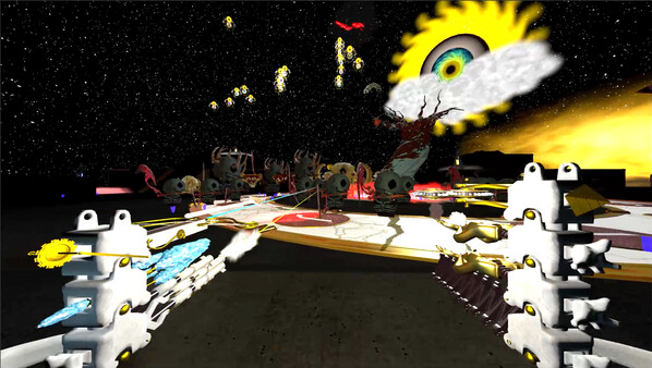 The game has Eye uv Eve is (maybe) the world's first First Person bullet heaven shooter, and almost definitely the first game featuring quattordectal gun wielding. Descend into the arena and survive for 30 minutes against massive waves of enemies. Make it long enough and you can collect up to 14 stacking weapons. Fill the screen with bullets and magic to defend yourself. Level up and improve yourself and your weapons. Fulfill achievement to unlock new characters, weapons, and more.