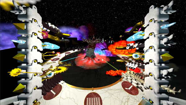 Eye uv Eve harkens back to the arena shooters of old, filtered through modern survivor/bullet-heaven games, with the twist of being able to wield 14 guns at once. Each gun has a unique mechanic and can be leveled up over the course of a 30 minute run and evolved to fire more bullets, faster, and weirder. You'll face off against an endless horde of Angels and Demons as you fly and sprint around the arena looking for the next gun. Collect the hearts of your enemies to unlock permanent upgrades and items to equip to come back faster and stronger in the next run.
