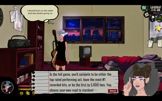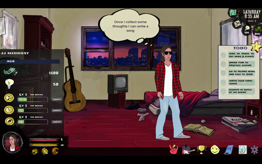 It’s 1992 in Emerald City. The world screams for change. Live the creative life and become the next big thing in the ultimate wannabe rockstar life sim! Level up your skills, craft & perform music, manage relationships & compete against your rivals in your quest to achieve your rockstar dreams!
