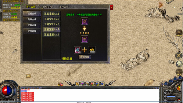 玩家可以合成宝石、勋章、护盾、护符。当四件装备同时达到同一个等级时,将会激活套装效果,效果极其卓越!