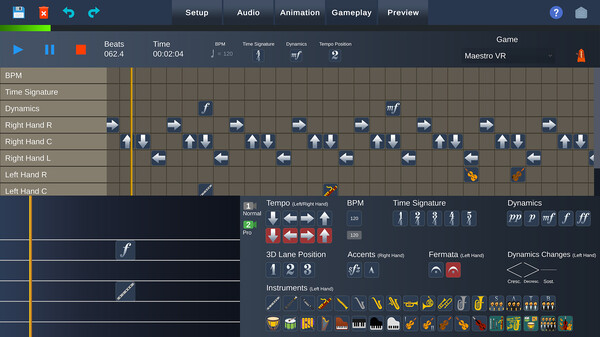 Maestro VR - Level Editor allows you to create and customize your own virtual symphony orchestra and design rhythmic levels within Maestro VR. Create, play, and take your passion for music to the next level!