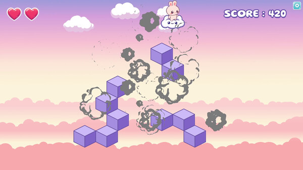 Play as Bunny and jump around the sky to color the cubes, avoid enemies or kill them! They are trying to stop you from exploding the cubes! Collect carrots and weapons to help you on your journey!