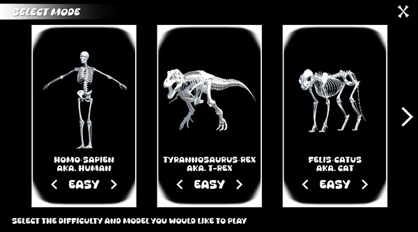 Only the first 3 skeletons available in the full release(T. Rex, Cat, and Human) will be available in this demo. The full release will include 9+ skeletons, save/leaderboard systems with player statistics, level progression, cosmetics for your skeletons, and much more!