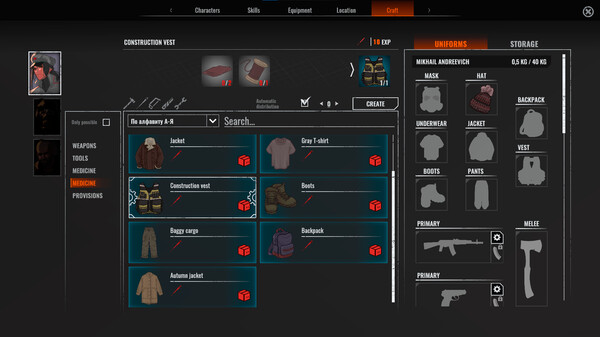You have three slots for equipment. The primary weapon slot can hold both powerful long-barreled and compact short-barreled weapons. The secondary slot is designed for quick access to pistols and submachine guns. And for close combat, prepare sharp knives, axes, a deadly spear or homemade weapons in the melee weapon slot.