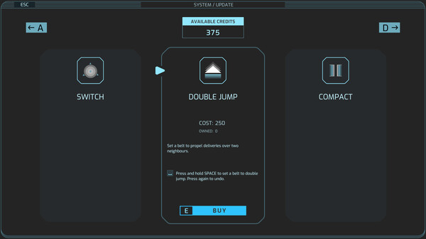 Key abilities to unlock (Jump, Double Jump, Switch, Compact, and Pause)
