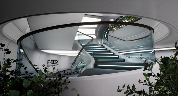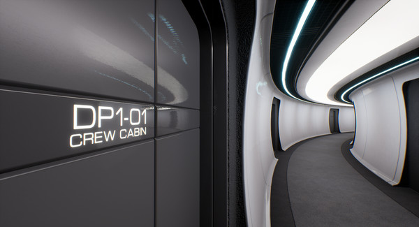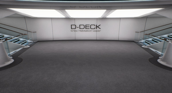 The bare titanium that defines the physical structure of the ship has been designed in line with the latest manufacturing techniques used in the real world today, projected forward 200 years with advances in 3D Printing and AI-driven automation in mind. Every structural beam and weld-line is represented in real-time, both between decks and behind every panel.