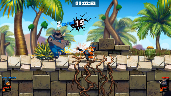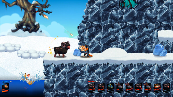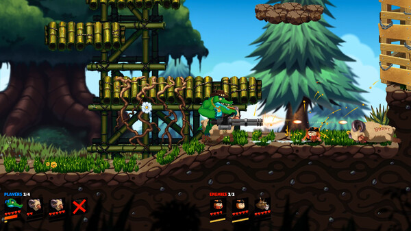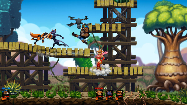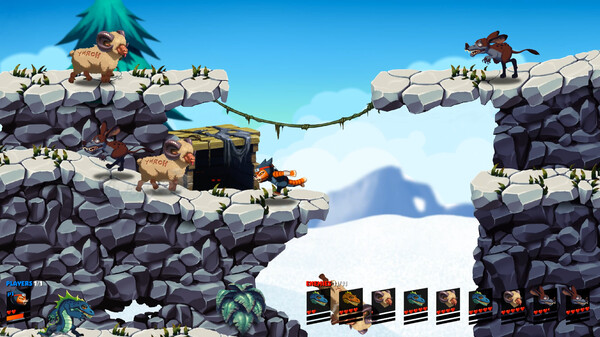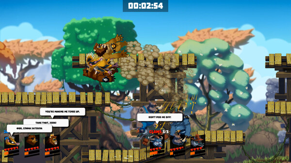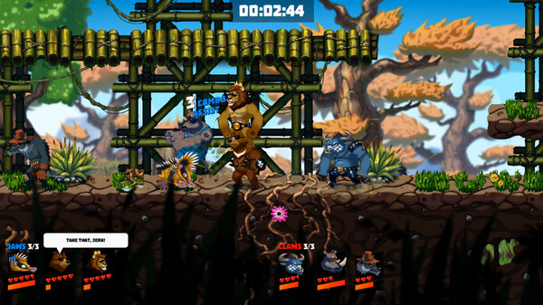 "Jaws & Claws" is a mix of such genres like 2D-platformer, fighter, beat'em up, party game. Gameplay is full of fights, gunfire, movement and rivalry.Game Features