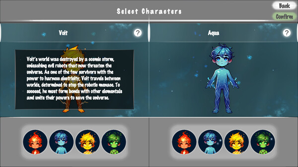 You control two elemental characters, utilizing their bonds to destroy enemies and gather their souls to feed the planets and the universe.Planets