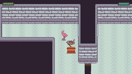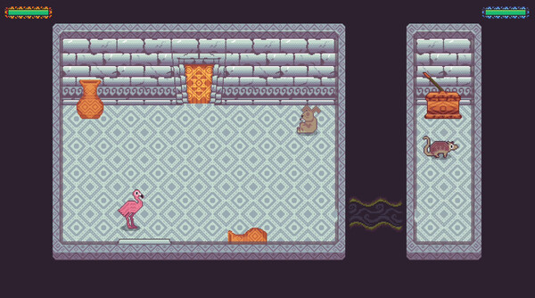 In this game, players simultaneously control Galaxia, a flamingo, and Charango, a quirquincho (an Andean armadillo), in a unique "single-player co-op" mode. Each character is controlled with one hand in a coordination exercise, requiring them to work together to solve puzzles and reach the mysterious god, Illapa.