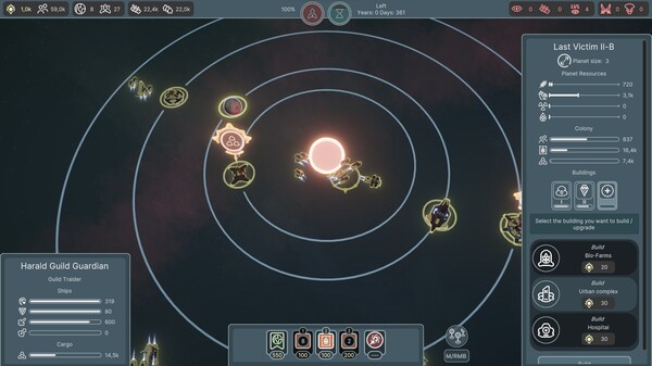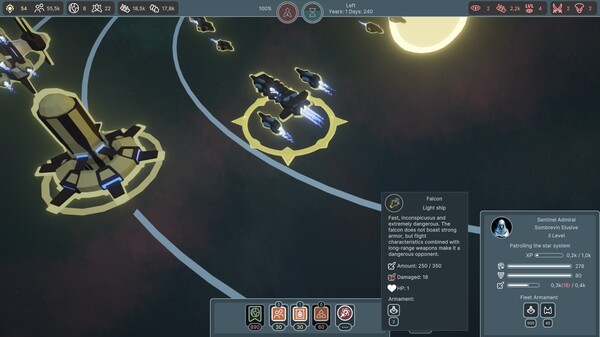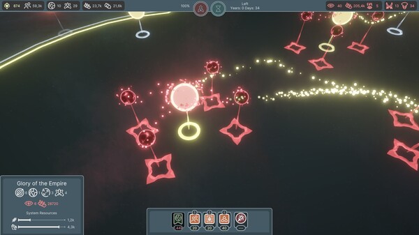 A large-scale 4X strategy game with indirect control and a focus on simulating a space empire. Capture systems, develop your economy and logistics, summon hundreds of powerful fleets, and watch as they incinerate the enemies of the Solar Empire.
