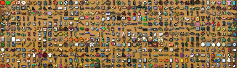 There are over 1200 items, with multiple variants to keep things interesting. From different types of clothes and accessories, to toys and electronics, to foods and drinks, and more.
