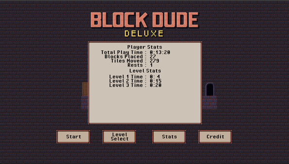 The game has In Block Dude Deluxe, your mission is simple—reach the exit in each level. But to do that, you'll need to strategically stack and move blocks to create pathways, staircases, and bridges to navigate complex environments. Every level presents a unique puzzle that will challenge your problem-solving skills and test your ability to think ahead.