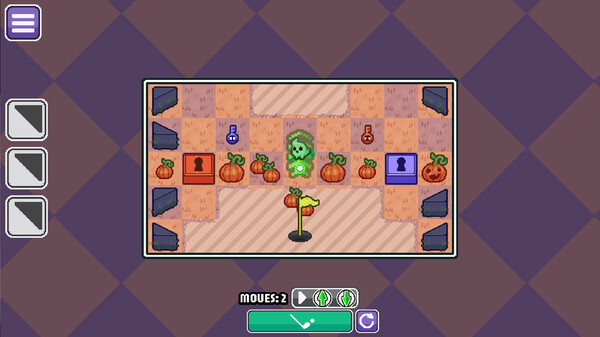 ⛳At the start of each level, the hole is there, lonely, on the other side of the field, and you have a series of pieces that form the path to it. There are windmills, pumpkins, gravestones, mirrors, and even portals! Your challenge? Build the perfect path to guide the ball! And believe me, it won't be easy. One misplaced piece, and the ball could end up rolling off the field or flying straight into the lake!