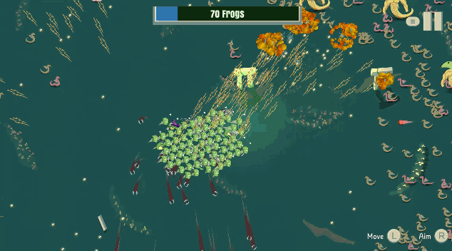 Every defeated snake poses an opportunity to amass more frogs. But watch out: each frog can only take one hit before being lost to the fires of war. Master your positioning to maximize the growth of your pond-dwelling platoon!