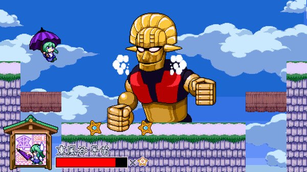 "SANAE's Sylphid Breeze" is a Touhou fan game with cute pixelart. With “SPELL SPOILER" she has created new ability, she inhales enemies and imitates their ability.