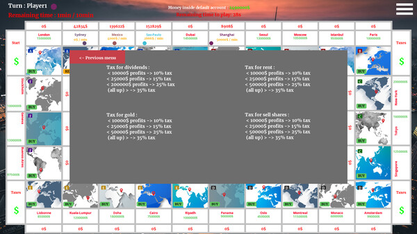 This game also aims to reproduce as close to reality as possible many situations that one may encounter when managing a financial portfolio! In addition to improving your geographic knowledge through the discovery of numerous cities, THE BEST INVESTOR is an excellent, fun and entertaining way to approach financial education!