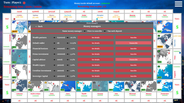 You will also be able to sell the cities you hold and their respective investments to other players and therefore buy the cities held by other players who have put them up for sale!