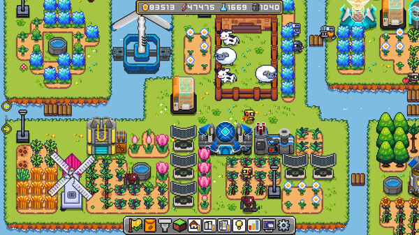 Assign tasks to robots and freely develop this huge island by planting, producing agricultural products, raising animals and building various structures.