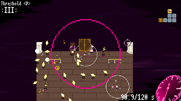 The clock hand granted you a power to stop time. Use it to dodge through bullets, confuse enemies, and get out from tricky situations.
