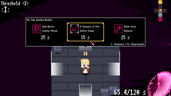 Time Snatcher Handy is a Timestop Bullet-hell Roguelike. Stop the time to dodge bullets, gather items to get stronger, and escape the Time Museum!