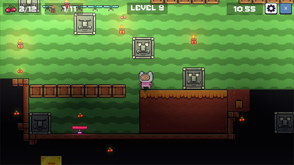 Cherry Jump Demo is a fast-paced 2D platformer where players race through pixel art levels, collecting cherries and aiming for the fastest times. Test your speed and skill as you navigate multiple paths, master four unique characters, and experience the core gameplay of this charming adventure.