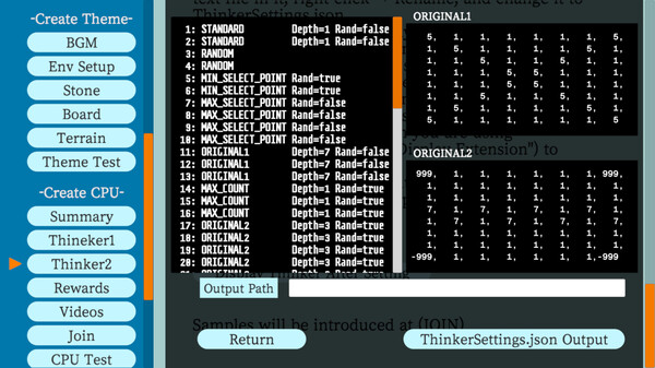 Original stones, boards, backgrounds, BGM, and CPUs created for loading into the trial version can also be used in the release version.