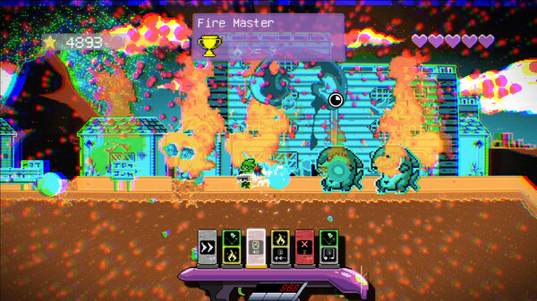 Add and swap cards in your weapon as their effects are applied in sequence to the next shot. Boost the damage, increase shooting speed, turn bullets into incendiary and bouncing projectiles! Make incredible combos and watch your creation evolve and transform into an indomitable force!