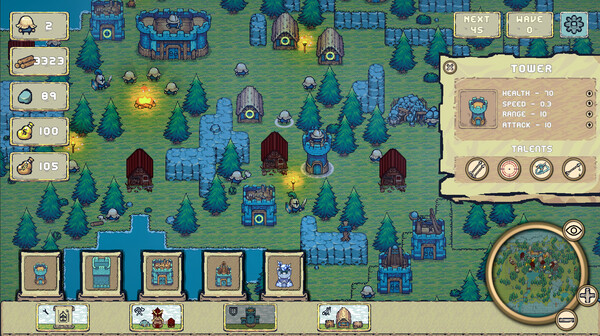 In the demo version, you can improve your towers with upgrades specific to their type. A "talents" feature, allowing you to further customize tower abilities, will be added in a future update.