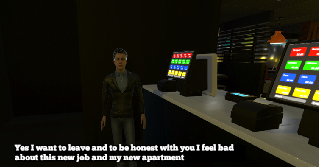 Gameplay: First person shooter, mysterious night atmosphere, finish the younger brother's missions, go to work, uncover the truth, hide, run away, choices change the ending of the game