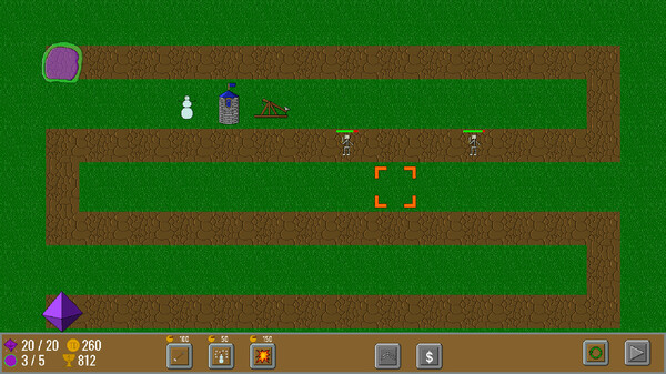 A minimalist 2D tower defense game with 3 towers, 6 maps, and 4 monster types. Simple, fun, and perfect for quick strategy sessions!