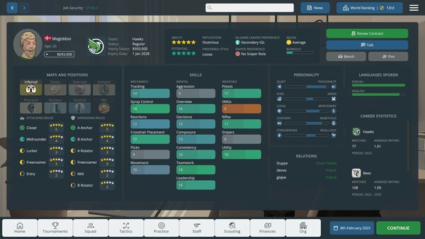 Pure skill is not everything when signing players. To create the perfect team dynamic you must take roles, personalities, and languages into consideration