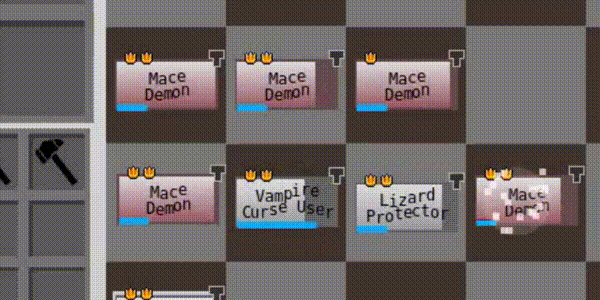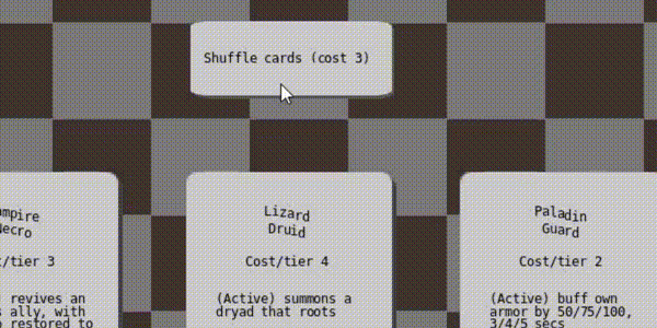 A single player only PvE autobattler that is purely GUI (graphical user inteface). Manage dealt cards (units). Combine units to level them up. Upgrade items.