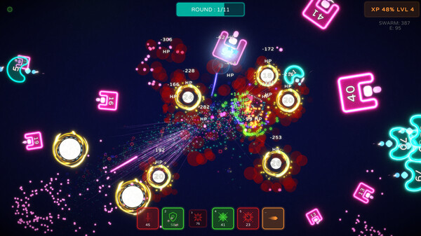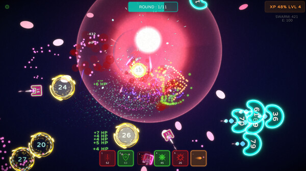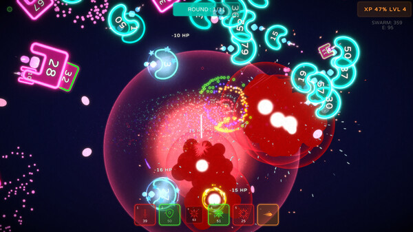 You fight by SMASHING the enemies with your Swarm. Your HP is Your Attack.