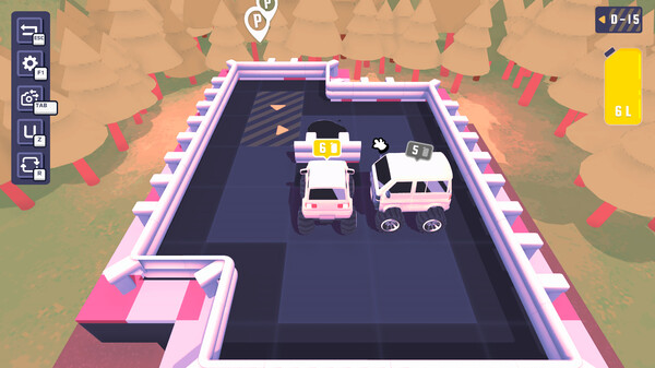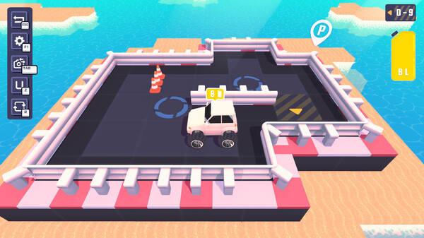 Park It! is a grid-based puzzle game where players must strategically maneuver vehicles to park them in the designated spot and correct direction, all while managing limited fuel.