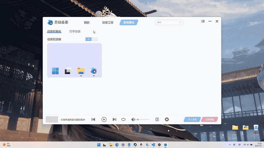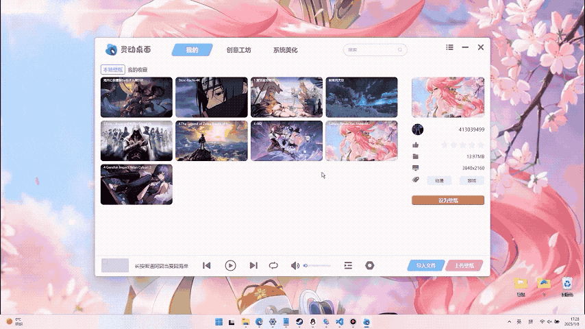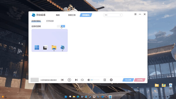 Set videos as wallpapers, and the software also supports making the taskbar transparent and enabling the typing - following skin, making your desktop more vivid and interesting. Alternatively, you can create your own wallpapers and share them on the Workshop to enjoy a better experience.