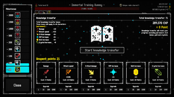 Get stronger with each knowledge transfer and unlock permanent upgrades