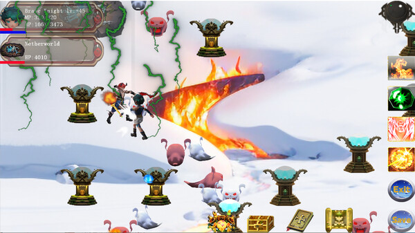 This is a role-playing game, the protagonist has four magic, the enemy has heroes, ordinary monsters, the enemy's heroes have powerful magic. Dropped weapons have a rank. Ordinary monsters will cause you trouble. The protagonist conquers an expedition to destroy the enemy's castle.