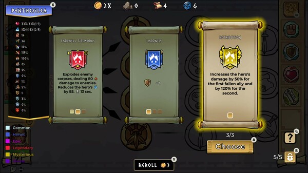 Selecting passive abilities for each hero — on each level, the player can choose a passive skill for the hero that will either permanently enhance them or trigger under specific conditions automatically).