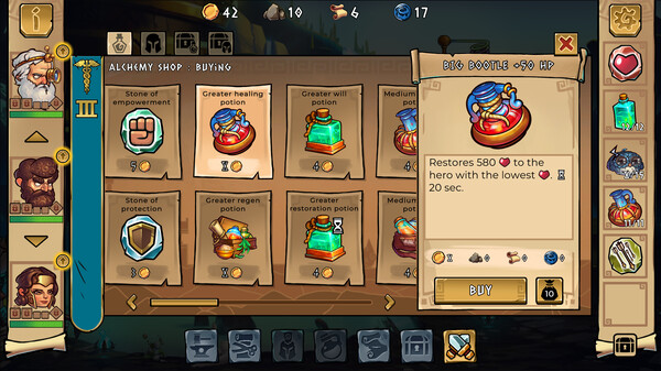 Where one adventure ends, perhaps not so successfully, another begins. And like any good adventure, it starts with preparation. To do so, players have access to Hades' estate. It must be upgraded, and the resources obtained in the adventure can be used to research technologies that will strengthen the heroes in future runs. Or visit the merchant and buy powerful artifacts, like the *Sword of a Thousand and One Truths* or the *Shield of Lion’s Courage*. Alternatively, you can purchase potions, scrolls, and gear up for the next exciting adventure. Preparation is crucial to return stronger and push further through the story each time. A new adventure—a new run. That’s why we chose a name that speaks for itself—*Run Heroes Run*!