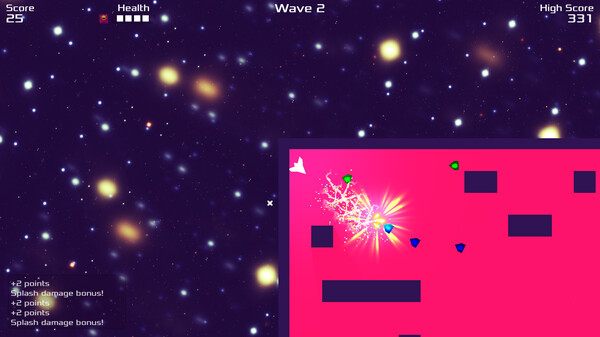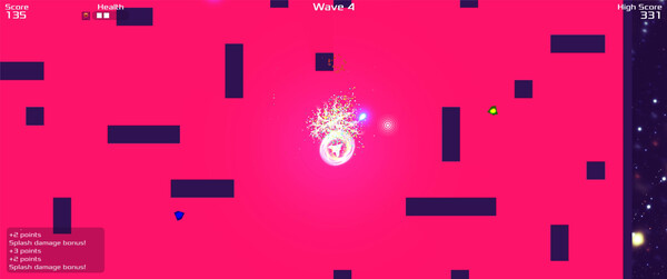 Enter a neon-charged battleground where survival meets explosive energy in this retro, space-themed twin-stick shooter! As you dance through waves of geometric adversaries, each defeated enemy leaves behind a deadly debris field—lure other enemies into these hazard zones to trigger devastating chain reactions and score multipliers.