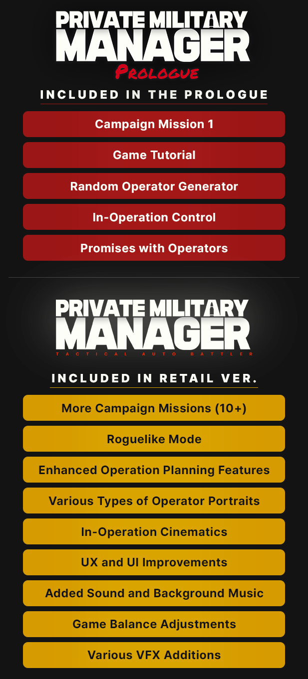 Private Military Manager: Prologue can playable the following platforms: Windows